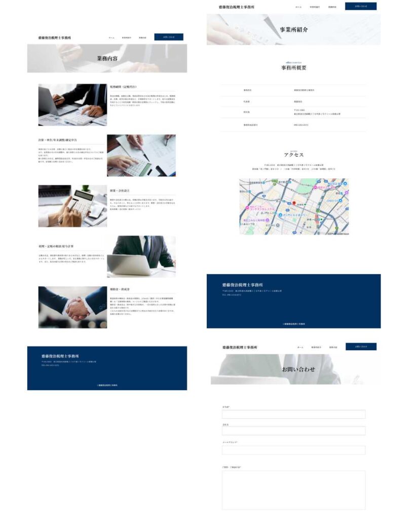 - 信頼感を重視し、税理士事務所としての堅実さや安心感が伝わるよう、ネイビーをメインカラーに採用しました。